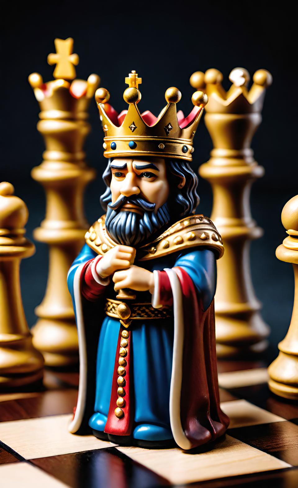 킹은 체크메이트될 경우 게임에서 패배하게 되는 가장 중요한 말입니다. 킹은 한 번에 한 칸씩만 모든 방향으로 이동할 수 있으며, 상대방의 공격으로부터 안전한 위치에 있어야 합니다. 킹은 '캐슬링'이라는 특별한 움직임을 통해 방어적인 위치를 개선할 수 있습니다. 이는 킹과 룩이 특정 조건 하에서 위치를 바꾸는 것을 말합니다.