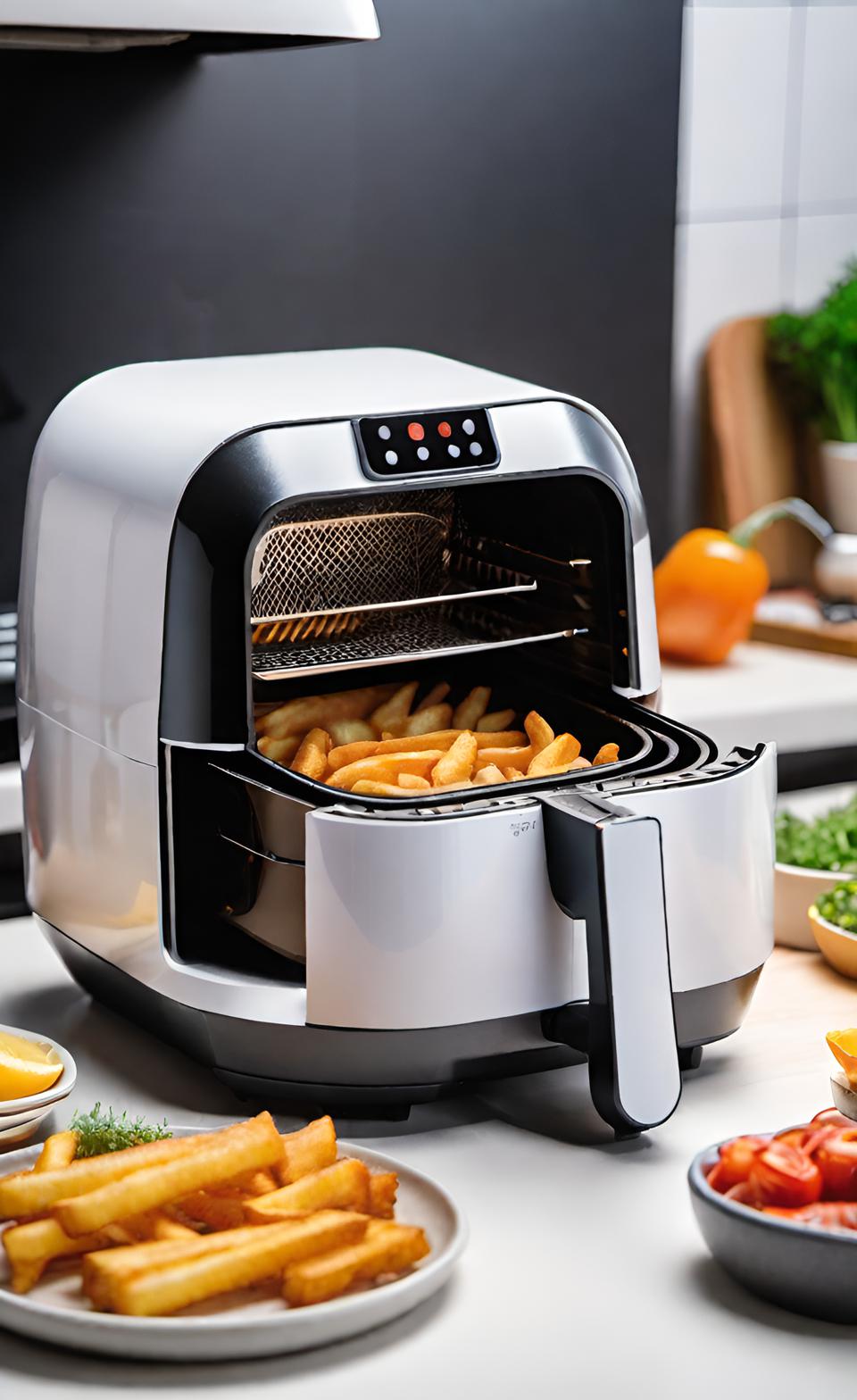 에어프라이어 오븐은 공기의 순환을 통해 음식을 조리하는 기능을 갖춘 오븐입니다. 고온의 공기를 사용하여 음식을 바삭하게 구워주는데, 주로 튀김이나 간편한 요리에 많이 사용됩니다. 에어프라이어 오븐은 일반 오븐보다 더 빠르게 음식을 조리할 수 있으며, 기름을 적게 사용하여 건강한 요리를 할 수도 있습니다.